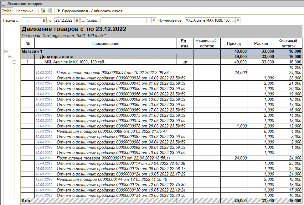 Движение товара.