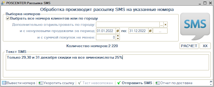 - Рассылки SMS по клиентской базе (уведомление о сезонном поступлении, чёрная пятница, скидки).